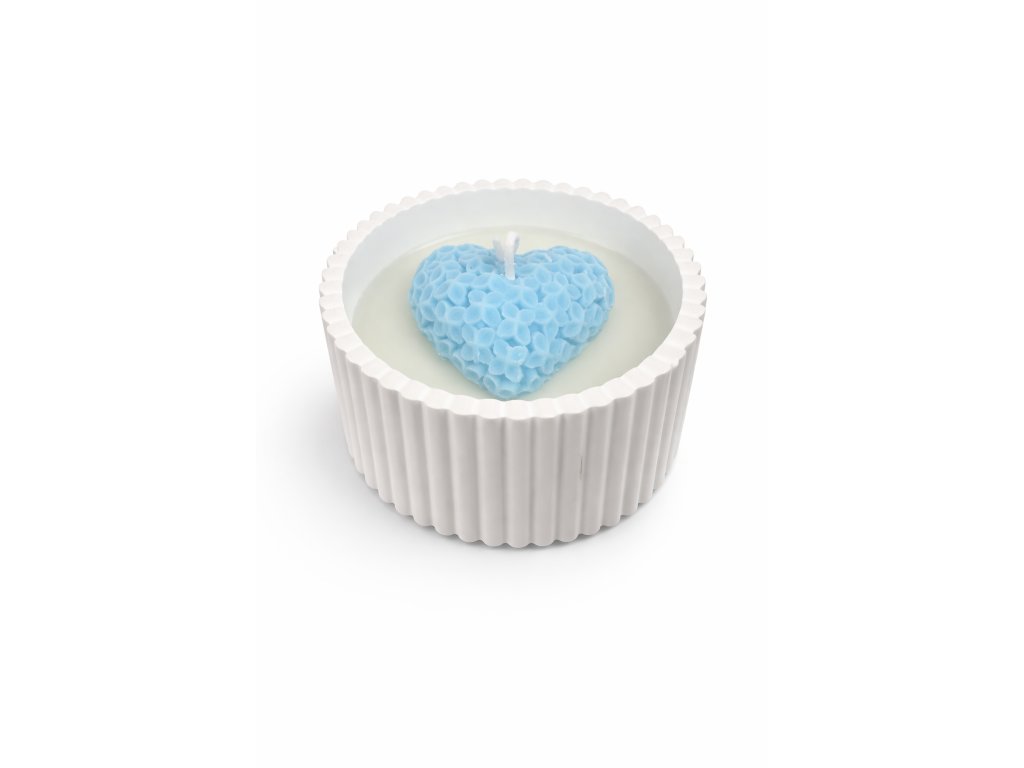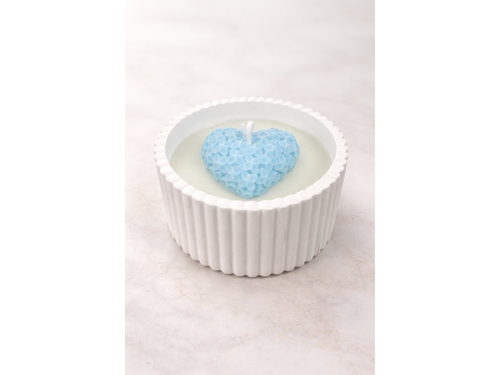 Tato ručně vyráběná svíčka v keramické misce je doplněna precizně tvarovaným srdcem v pastelově modré barvě. Každý detail je tvořen s láskou tak, aby vytvořil harmonický a luxusní doplněk do vašeho interiéru.
